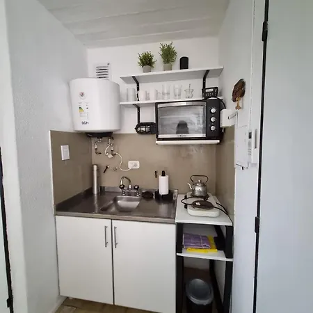 Experience ultimate comfort in Complejo 9 De Julio Apartment's kitchen, supplied with a fridge, an oven, and kitchenware.